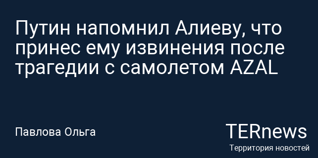 Путин напомнил Алиеву, что принес ему извинения после трагедии с самолетом AZAL