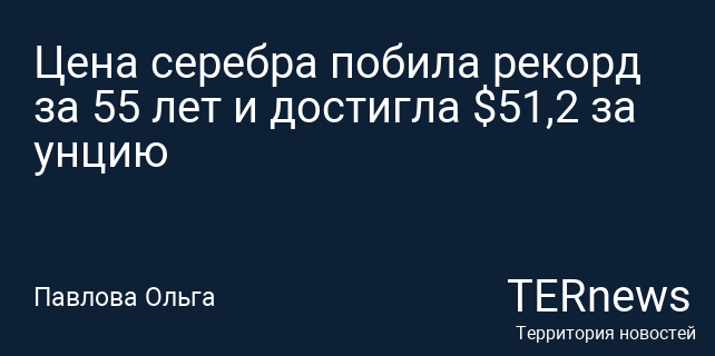 Цена серебра побила рекорд за 55 лет и достигла $51,2 за унцию