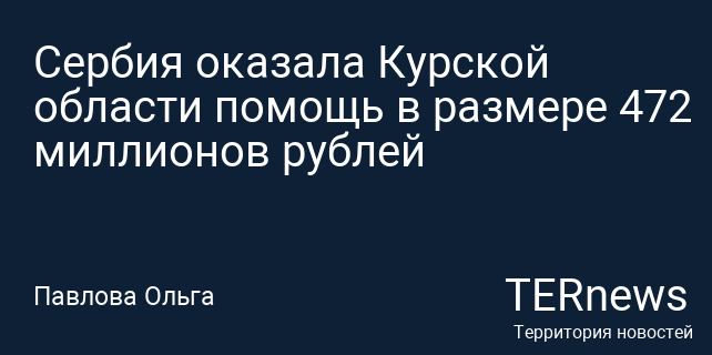 Сербия оказала Курской области помощь в размере 472 миллионов рублей