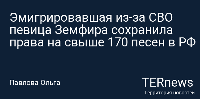 Эмигрировавшая из-за СВО певица Земфира сохранила права на свыше 170 песен в РФ