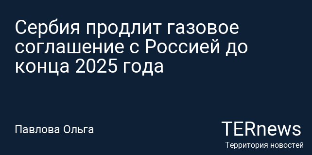 Сербия продлит газовое соглашение с Россией до конца 2025 года