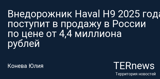 Внедорожник Haval H9 2025 года поступит в продажу в России по цене от 4,4 миллиона рублей