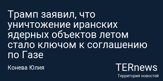 Трамп заявил, что уничтожение иранских ядерных объектов летом стало ключом к соглашению по Газе