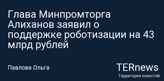 Глава Минпромторга Алиханов заявил о поддержке роботизации на 43 млрд рублей