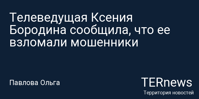 Телеведущая Ксения Бородина сообщила, что ее взломали мошенники