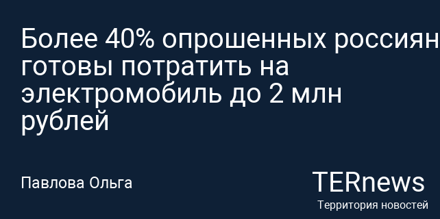Более 40% опрошенных россиян готовы потратить на электромобиль до 2 млн рублей