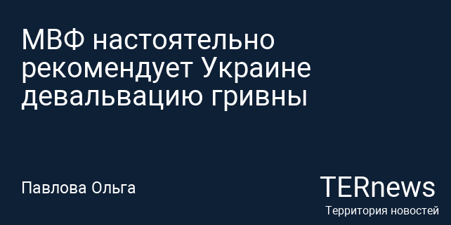 МВФ настоятельно рекомендует Украине девальвацию гривны