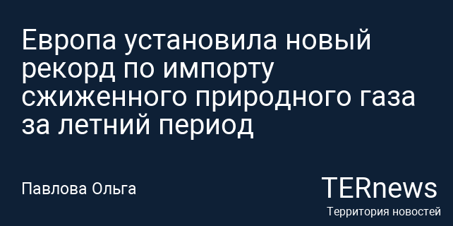 Европа установила новый рекорд по импорту сжиженного природного газа за летний период