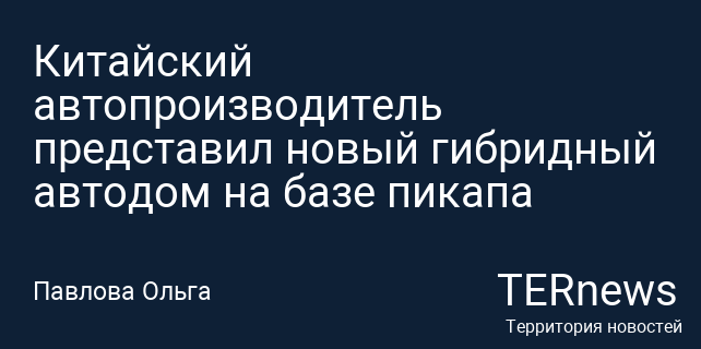Китайский автопроизводитель представил новый гибридный автодом на базе пикапа