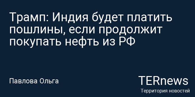 Трамп: Индия будет платить пошлины, если продолжит покупать нефть из РФ