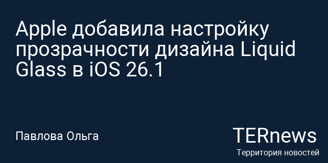 Компания выпустила для разработчиков четвёртую бета-версию iOS 26.1, iPadOS 26.1 и macOS 26.1, в которой появилась возможность менять уровень прозрачности нового оформления интерфейса Liquid Glass, сообщает MacRumors. Новый дизайн, дебютировавший в iOS 26, принес заметный эффект прозрачности и вызвал разнонаправленные отзывы среди владельцев устройств, поэтому разработчики добавили опцию персонализации.