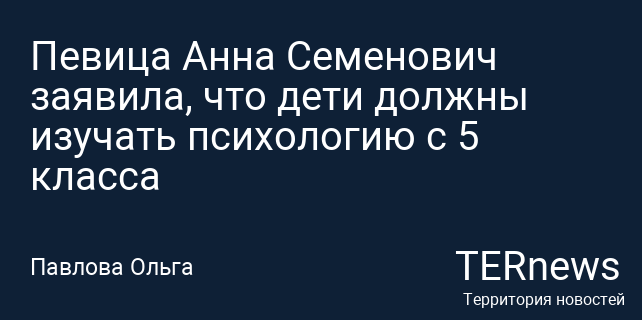 Певица Анна Семенович заявила, что дети должны изучать психологию с 5 класса