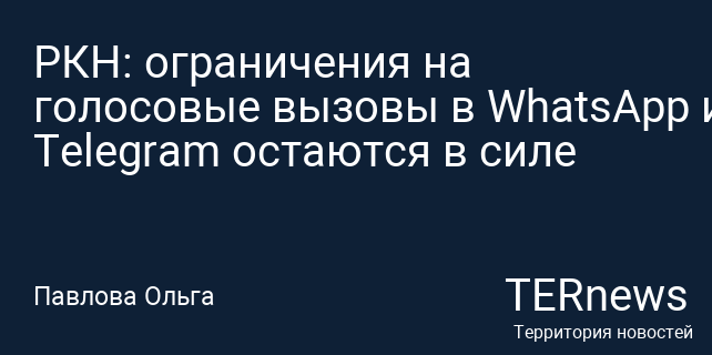 РКН: ограничения на голосовые вызовы в WhatsApp и Telegram остаются в силе