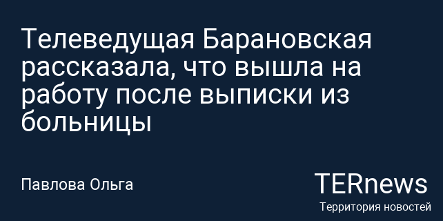 Телеведущая Барановская рассказала, что вышла на работу после выписки из больницы