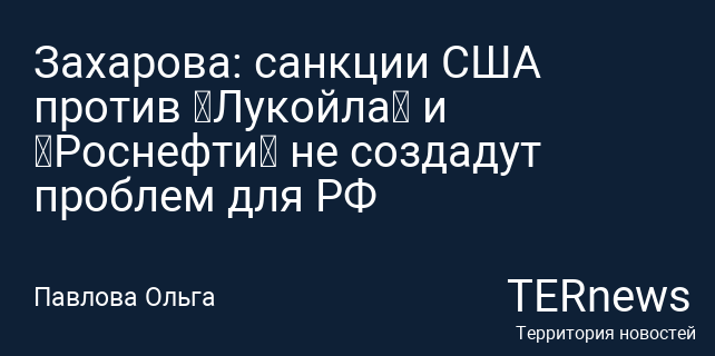 Захарова: санкции США против «Лукойла» и «Роснефти» не создадут проблем для РФ