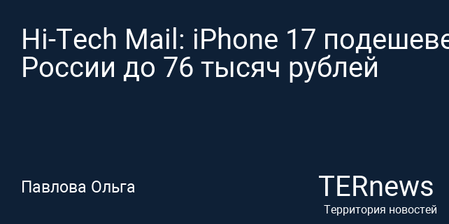 Hi-Tech Mail: iPhone 17 подешевел в России до 76 тысяч рублей