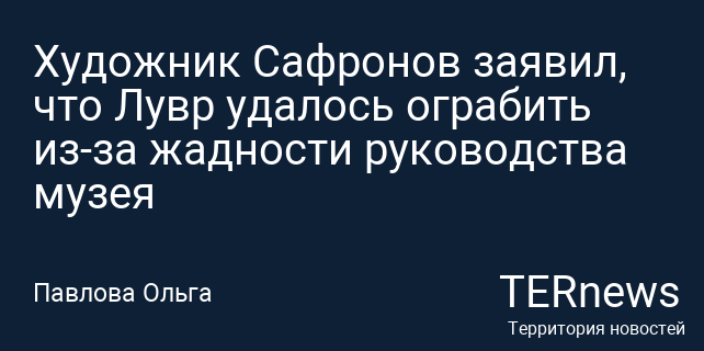 Художник Сафронов заявил, что Лувр удалось ограбить из-за жадности руководства музея