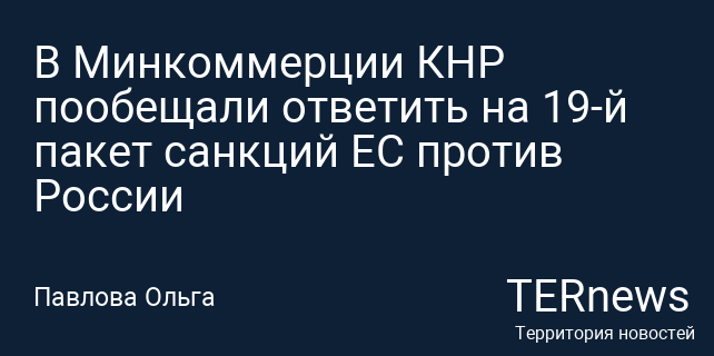 Министерство коммерции Китая заявило о решительном несогласии с новым, 19-м по счету, пакетом санкций, принятым Евросоюзом, сообщает ТАСС. В ведомстве подчеркнули, что меры ЕС наносят ущерб интересам Китая и серьёзно осложняют торгово-экономическое взаимодействие между КНР и Европой, а также ослабляют устойчивость мировых энергорынков.