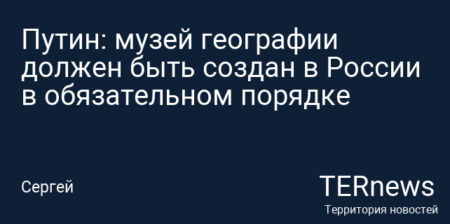 На пленарном заседании XVII съезда Русского географического общества президент Владимир Путин заявил о необходимости создания в нашей стране полноценного музея географии, трансляция заседания велась через Telegram-канал Кремля. По его словам, специализированных географических музеев в мире немного, и учреждение подобного центра в России должно быть проведено без исключений.