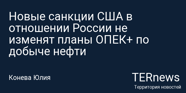 Новые санкции США в отношении России не изменят планы ОПЕК+ по добыче нефти