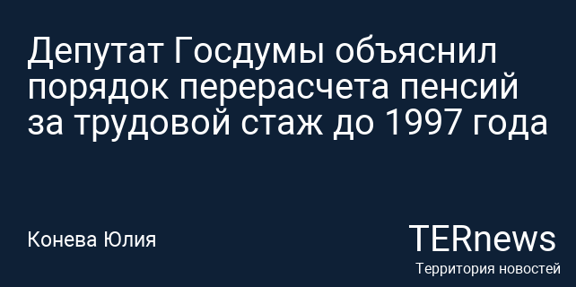 Депутат Госдумы объяснил порядок перерасчета пенсий за трудовой стаж до 1997 года