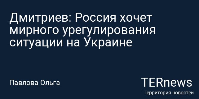 Дмитриев: Россия хочет мирного урегулирования ситуации на Украине