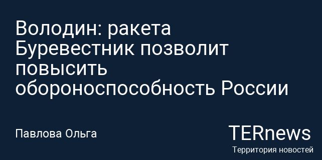 Володин: ракета Буревестник позволит повысить обороноспособность России