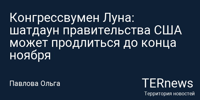 Конгрессвумен Луна: шатдаун правительства США может продлиться до конца ноября