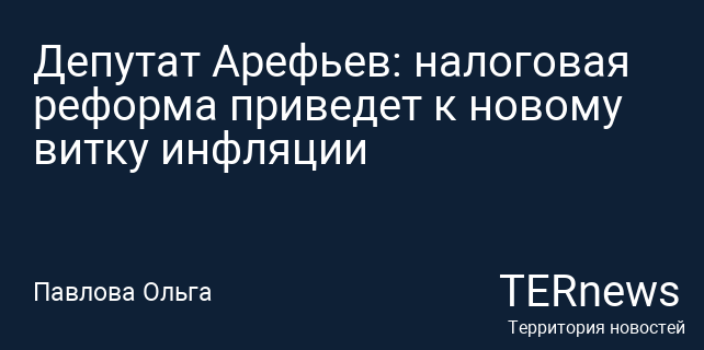 Депутат Арефьев: налоговая реформа приведет к новому витку инфляции