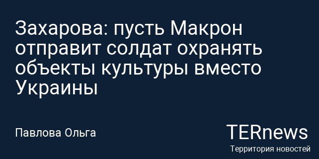 Захарова: пусть Макрон отправит солдат охранять объекты культуры вместо Украины
