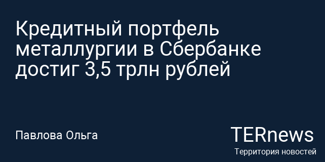 Кредитный портфель металлургии в Сбербанке достиг 3,5 трлн рублей