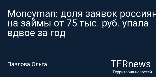 Moneyman: доля заявок россиян на займы от 75 тыс. руб. упала вдвое за год