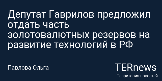 Депутат Гаврилов предложил отдать часть золотовалютных резервов на развитие технологий в РФ