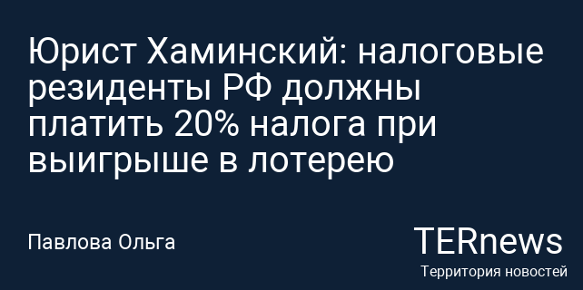 Юрист Хаминский: налоговые резиденты РФ должны платить 20% налога при выигрыше в лотерею