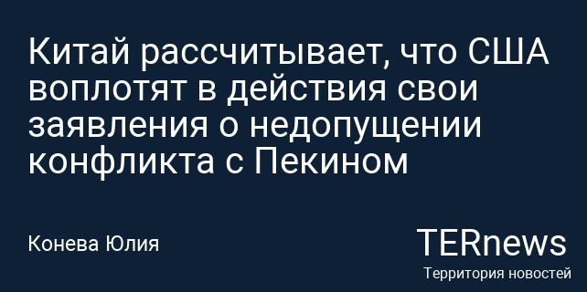 Китай рассчитывает, что США воплотят в действия свои заявления о недопущении конфликта с Пекином