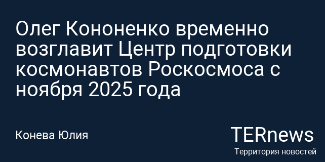 Пресс-служба госкорпорации сообщила о назначении командира отряда космонавтов, Героя России Олега Кононенко, на пост временно исполняющего обязанности начальника Центра подготовки космонавтов. Назначение вступит в силу с 10 ноября 2025 года.