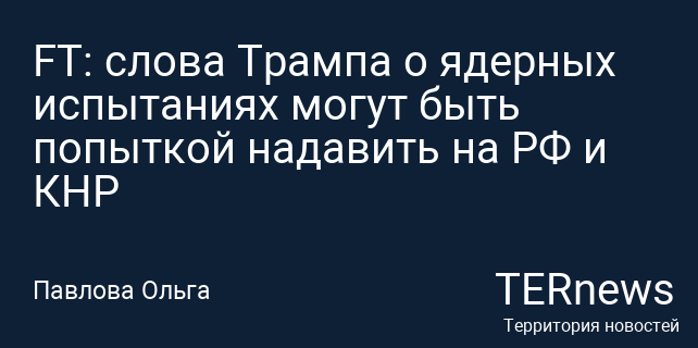 FT: слова Трампа о ядерных испытаниях могут быть попыткой надавить на РФ и КНР