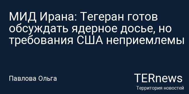 МИД Ирана: Тегеран готов обсуждать ядерное досье, но требования США неприемлемы