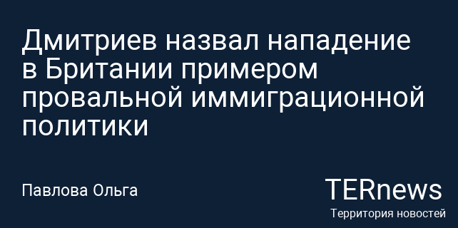 Дмитриев назвал нападение в Британии примером провальной иммиграционной политики
