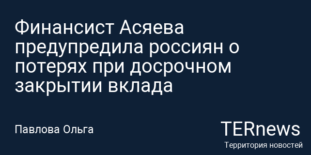 Финансист Асяева предупредила россиян о потерях при досрочном закрытии вклада