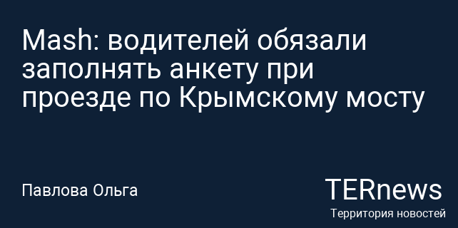 Mash: водителей обязали заполнять анкету при проезде по Крымскому мосту