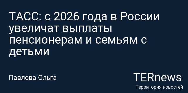 ТАСС: с 2026 года в России увеличат выплаты пенсионерам и семьям с детьми