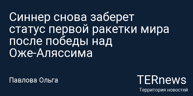 Синнер снова заберет статус первой ракетки мира после победы над Оже-Аляссима