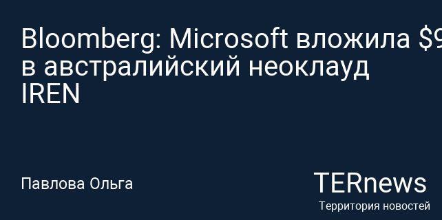 Bloomberg: Microsoft вложила $9,7 млрд в австралийский неоклауд IREN