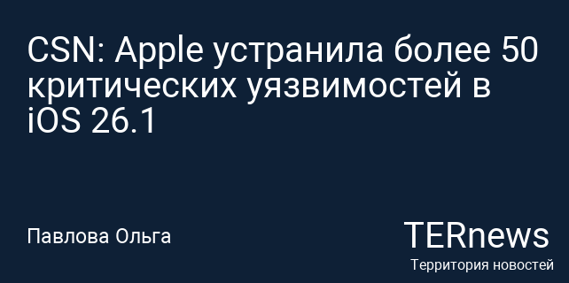 CSN: Apple устранила более 50 критических уязвимостей в iOS 26.1