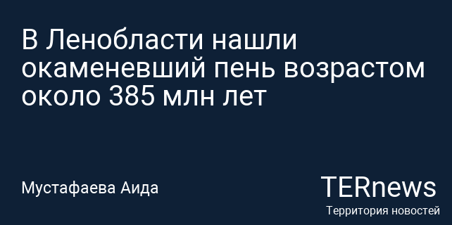 В Ленинградской области, неподалёку от Луги, обнаружен окаменевший пень, которому ориентировочно 385 млн лет, сообщает источник. Находку сделал участник сообщества «Палеопитер» Денис Гогуев. За раскопками следил директор палеонтологического музея СПбГУ Дмитрий Григорьев. По предварительной оценке, пень относится к девонскому периоду эпохи становления первых лесов. Редкость экземпляра в сохранности ствола и корневой системы, что для северных широт Европы встречается крайне нечасто и позволяет изучить внутреннее строение древнейших древесных форм.