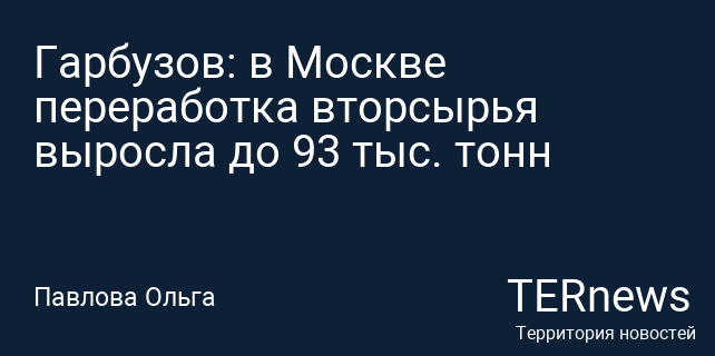 Гарбузов: в Москве переработка вторсырья выросла до 93 тыс. тонн