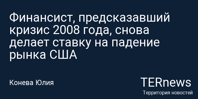 Финансист, предсказавший кризис 2008 года, снова делает ставку на падение рынка США