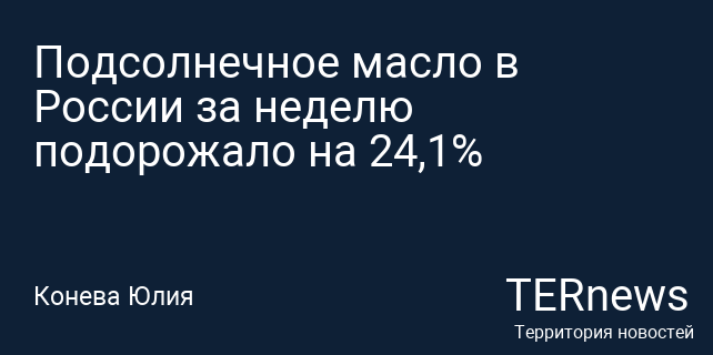 Согласно информации, предоставленной Александром Абрамовым, специалистом в области анализа финансовых рынков, стоимость подсолнечного масла в России возросла на 24,1% в период с 25 октября по 1 ноября. Он также отметил, что за эту неделю индекс потребительских цен, известный как Индекс Мишек, увеличился на 1,9%, что противопоставляется его снижению на 1% на предыдущей неделе.