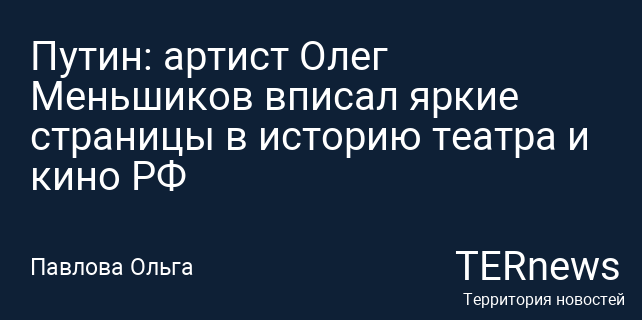 Президент России Владимир Путин поздравил народного артиста Российской Федерации Олега Меньшикова с юбилеем — соответствующая телеграмма размещена на официальном сайте Кремля. Глава государства подчеркнул, что актер оставил значимый след в развитии отечественного театра и кинематографии.